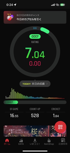 カイジのためにここ2ヶ月ずーーっとライブばかり選んで投げてたからよーーやくフェニ投げれる!嬉しい!昨日は居心地の良いフェニ投げれるとこ、タバコも吸えるし味噌汁も飲めるし貸切だしそこで3h一生懸命投げた!筋肉疲労たまってきてるけど!低いのあんま出さずに、4~500安定して投げれたらアベレージ460前後→520超えた!これを下げるのは簡単なんだけど、下げないようがんばろっ